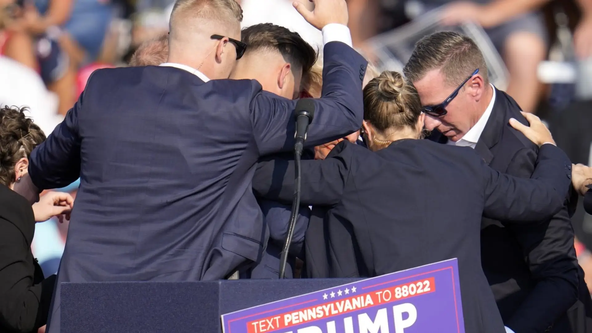 NEW YORK (AP) -- Jarring, chaotic and sudden, the bullet whizzed toward the stage where former President Donald Trump stood behind a podium speaking. In its wake: the potential for a horrifying and tragic chapter in American history.