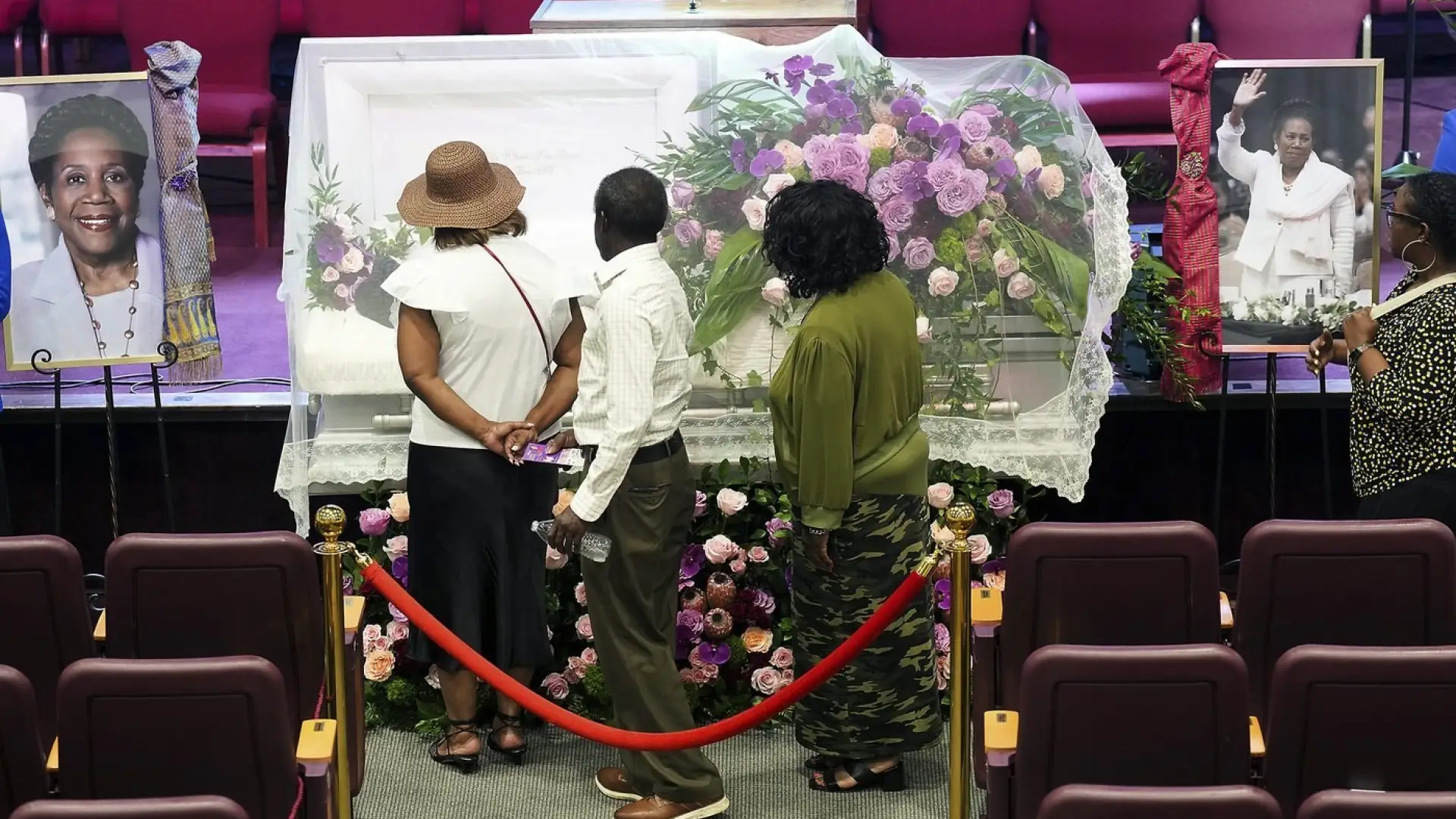 Services for Jackson Lee began on Monday when hundreds of people paid their respects to her as her body lay in state in a flag-draped coffin inside Houston's City Hall. President Joe Biden placed a bouquet of flowers near her casket and visited with Jackson Lee's family.