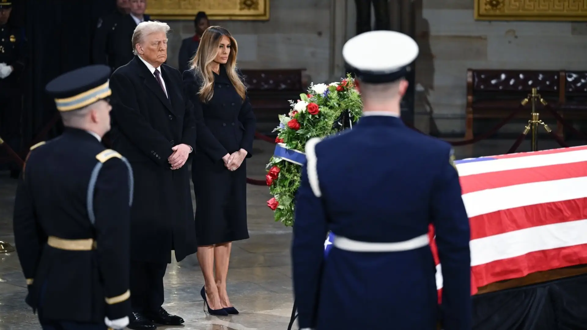 Trump, who plans to attend Carter's funeral Thursday at Washington National Cathedral, played it straight on Capitol Hill, walking somberly into the rotunda with his wife, Melania, and pausing in front of Carter's flag-draped casket, which is resting atop the Lincoln catafalque and stands surrounded by a military honor guard.