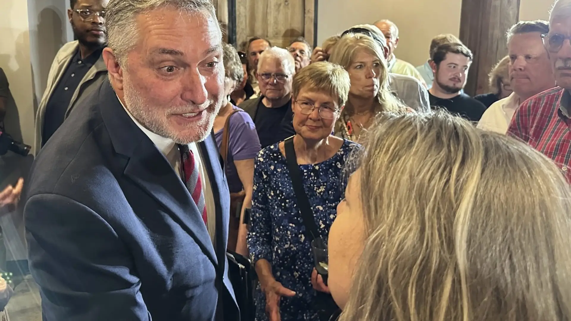 An older gentleman walked up to Reid and gently shook his hand, handing him an envelope. Reid thanked him before tucking the envelope into his inside pocket.