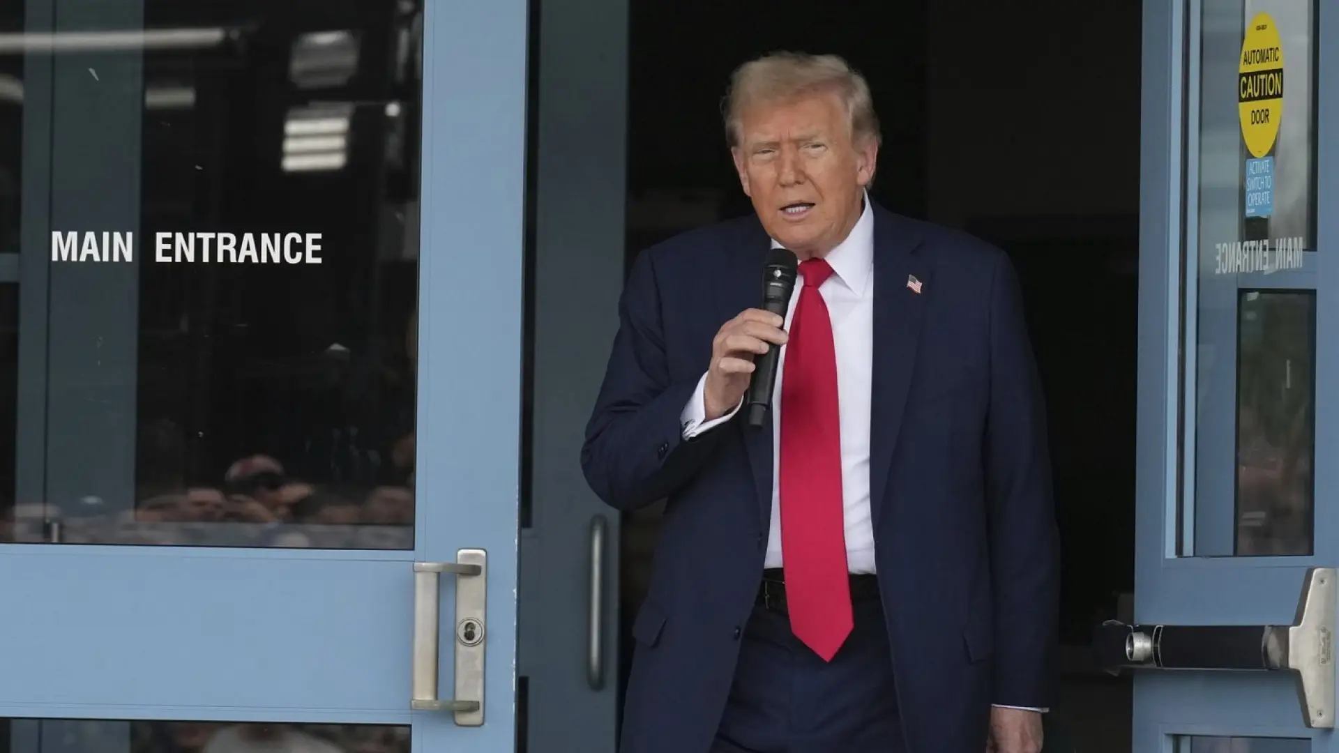 Trump could be spotted on video posted on social media walking into the building with his chief of staff Susie Wiles.