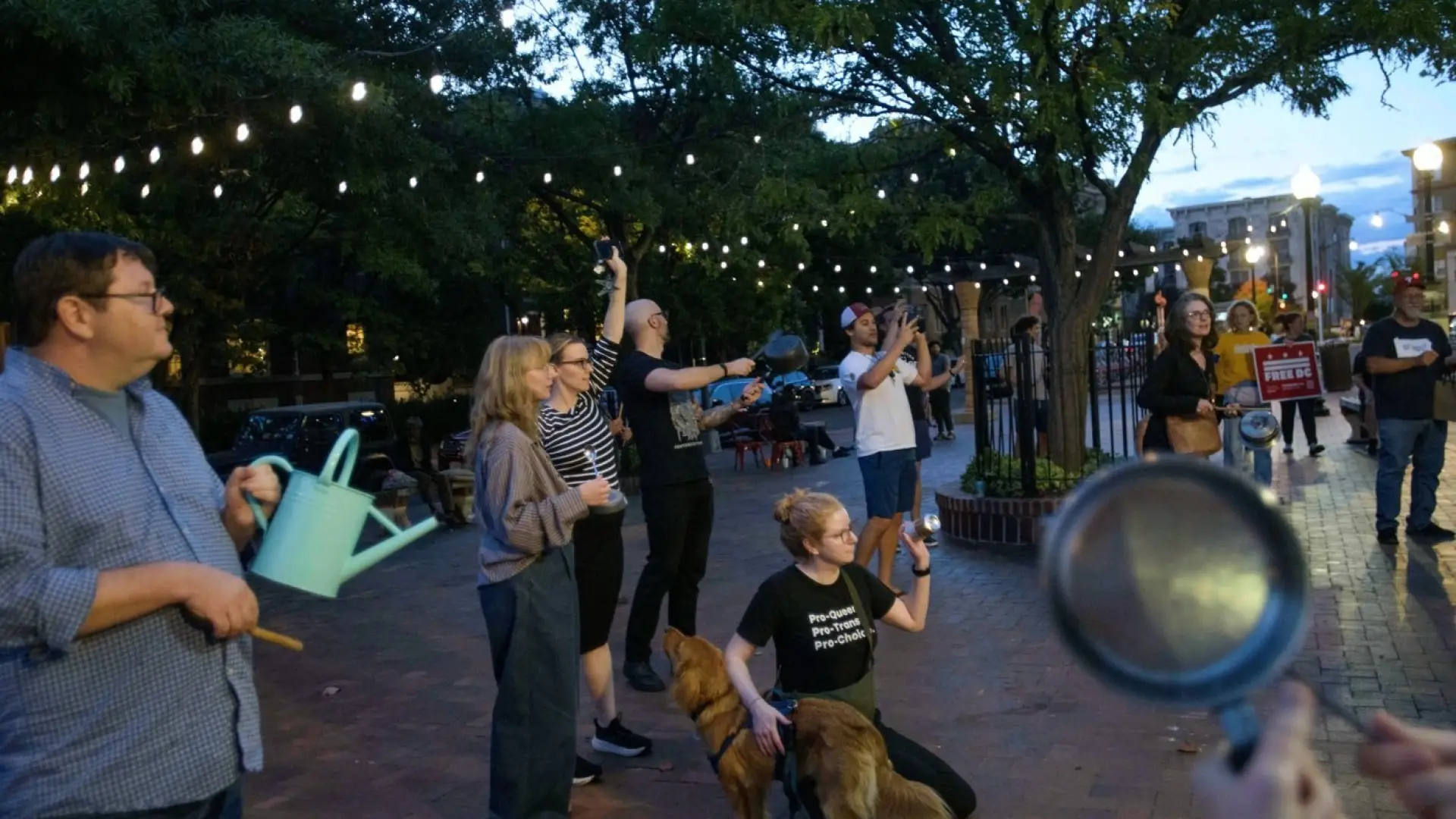 Democratic Rep. Delia Ramirez urged residents to get involved the community organizations organizing protests against U.S. Immigration and Customs Enforcement in Chicago. She was surrounded by dozens of people holding signs declaring "ICE OUT OF CHI."