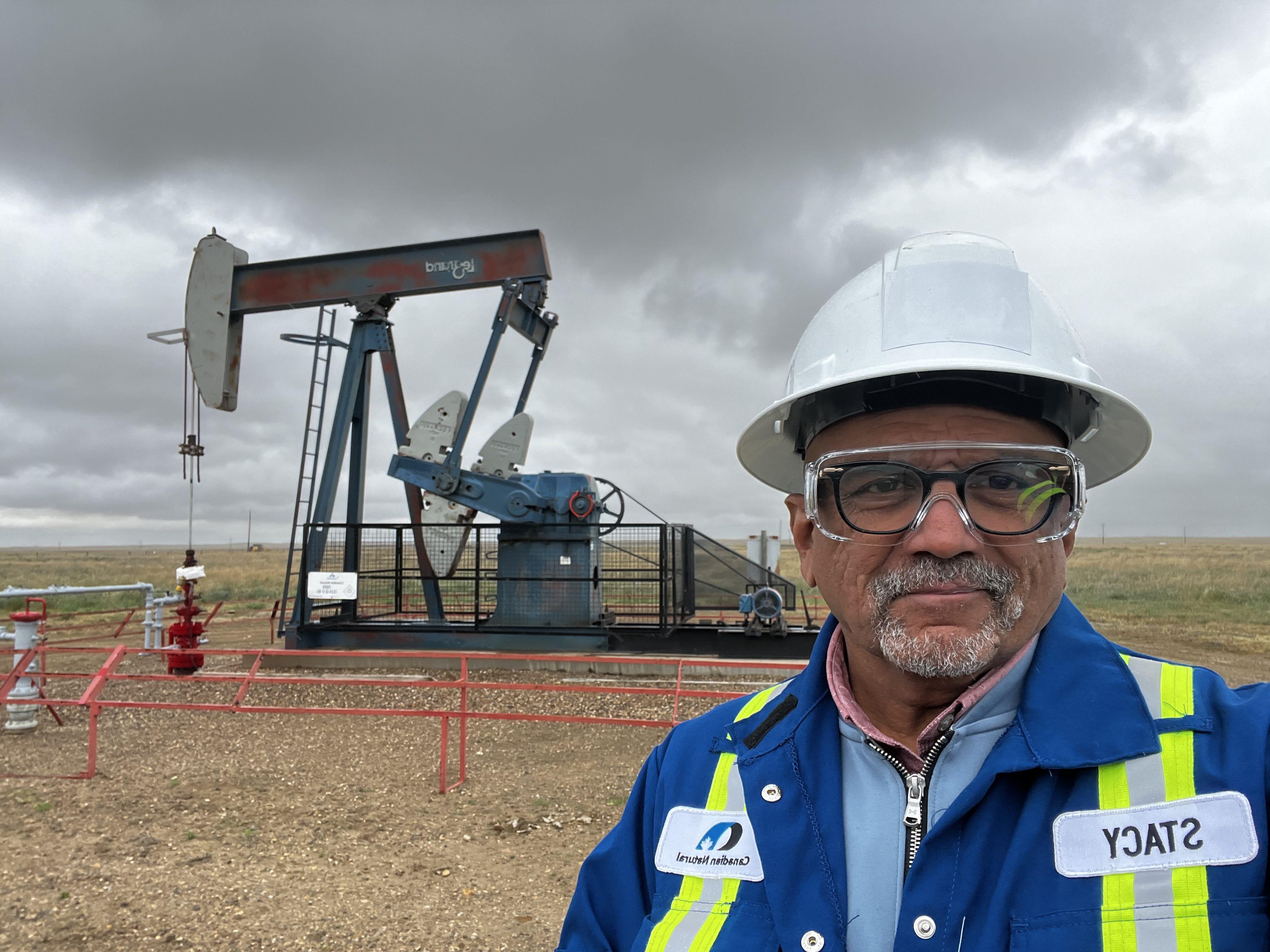 We were introduced to an oil field battery. The essential Alberta pump jack with a processing unit. Oil reserves in the south are not what they are in northern Alberta, but they are present, but they do go after every drop of oil that is under the land – and they don’t frack. Fresh oil is thick to the touch.