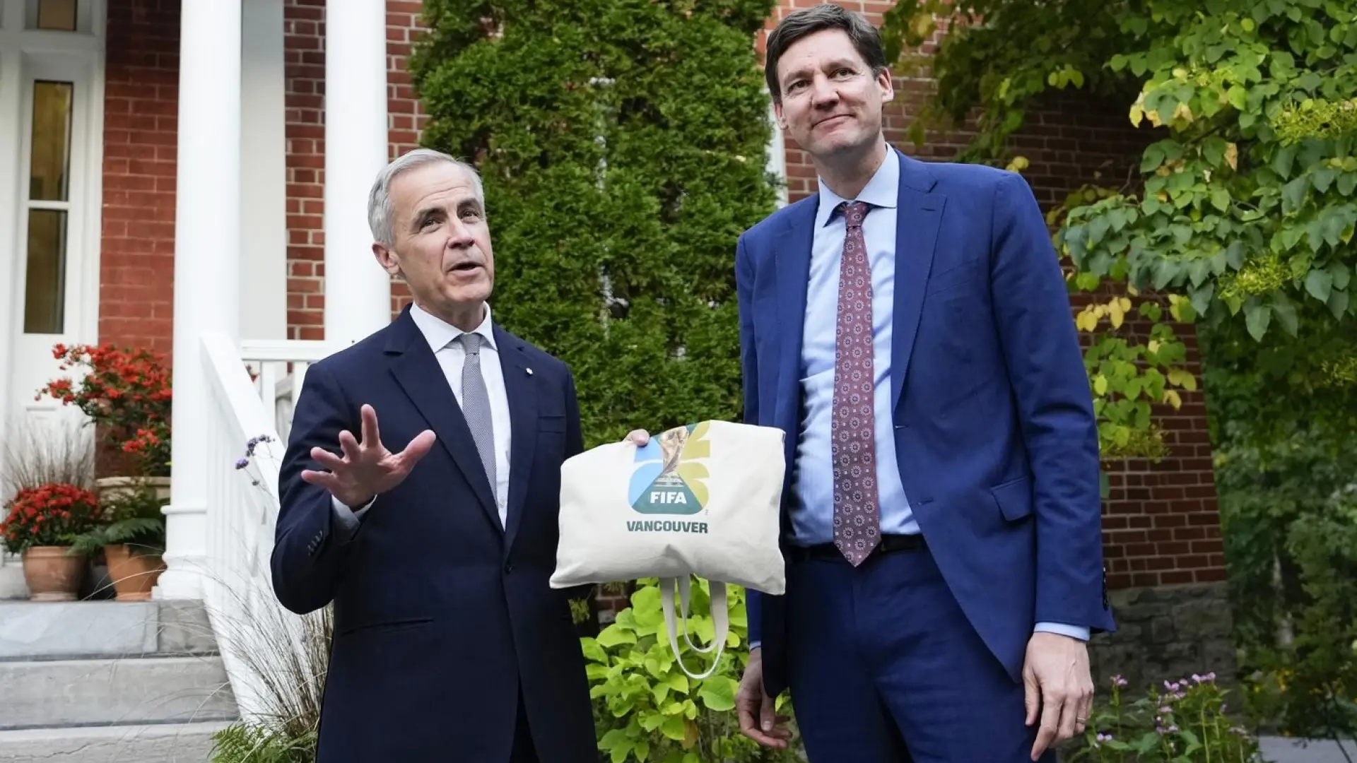 As the pair greeted each other outside of the building, Eby presented Carney with a FIFA Vancouver branded tote bag, to which the prime minister said "a man after my own heart."