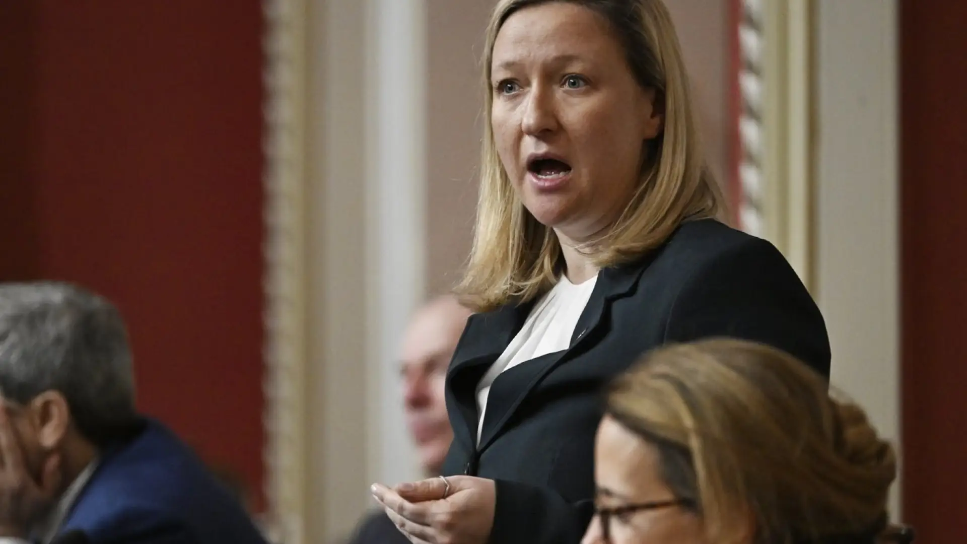 Her announcement came as the CAQ caucus gathered in the legislature to go over last week's cabinet shuffle, but one high-profile member was absent -- former public security minister Francois Bonnardel, whom Legault also dropped from cabinet last week.