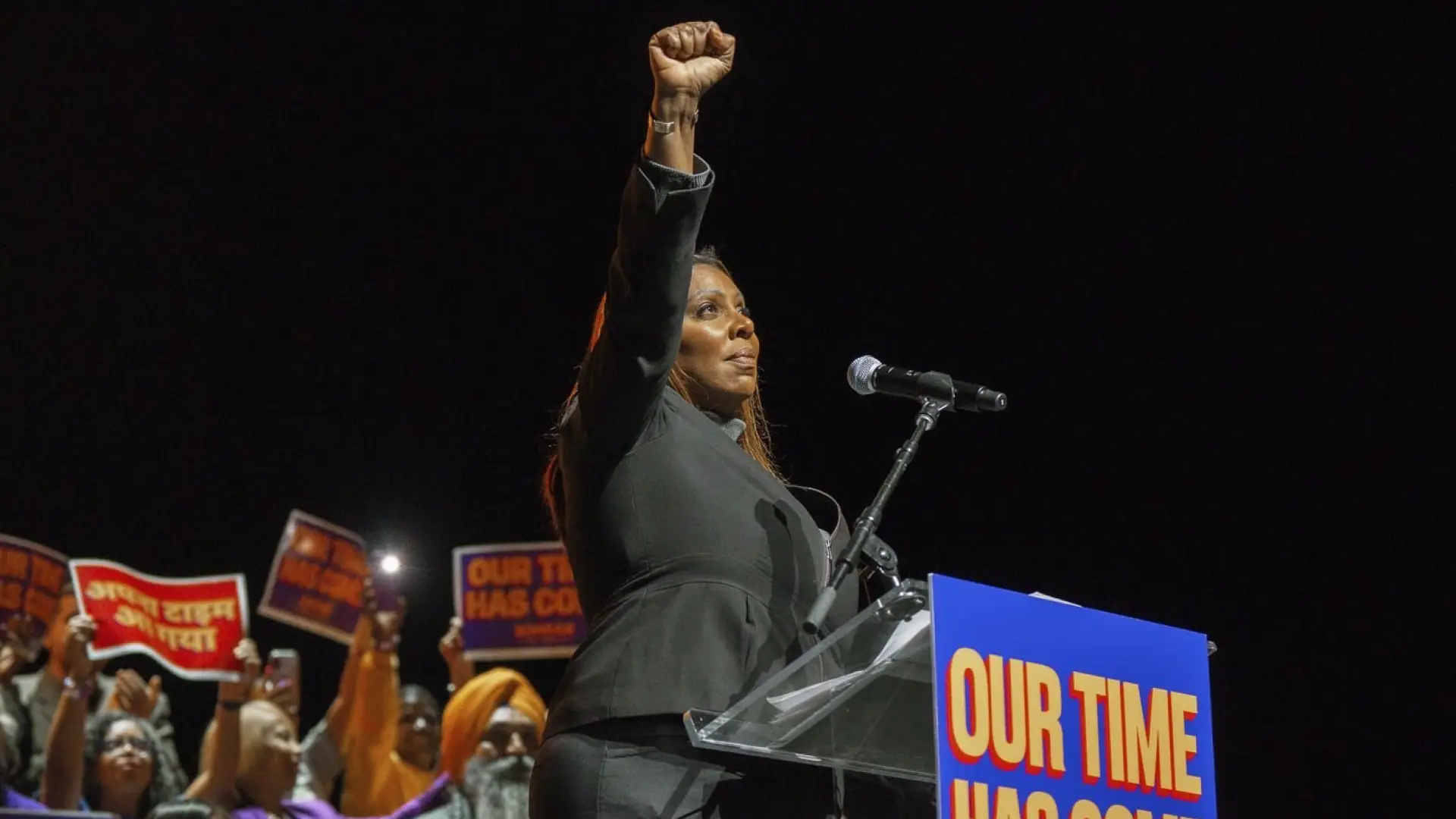 The Democrat took the stage to thunderous and sustained applause and chants of "We love Tish" during a boisterous rally for New York City mayoral candidate Zohran Mamdani in the city's Washington Heights neighborhood.