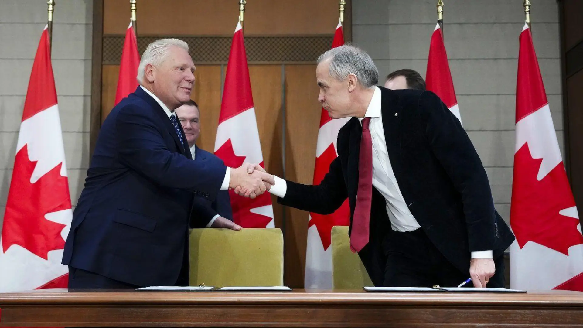 Ottawa -- Prime Minister Mark Carney and Ontario Premier Doug Ford signed an agreement Thursday to speed up approval of major projects in the province under a "one project, one process, one decision" model.