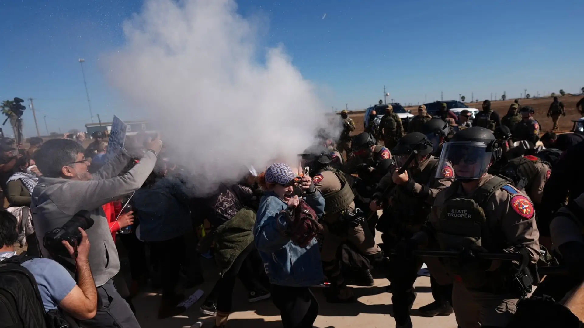 DILLEY, Texas (AP) -- Texas state police deployed chemical irritants toward protesters Wednesday outside a federal detention facility where a Democratic congressman met with a 5-year-old Ecuadorian boy and his father whose case has stirred anger over the Trump administration's immigration crackdown.