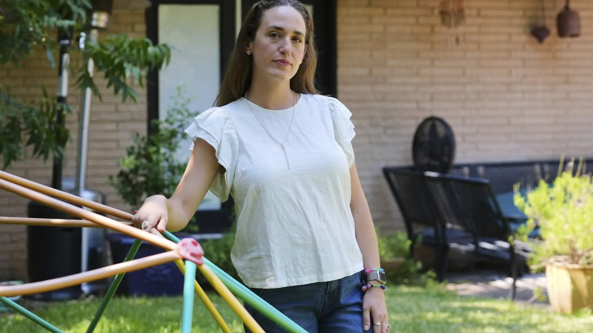 Angela Juergens, 37, grew up in New York and moved to Texas after college to work as a public school art teacher. Now a married stay-at-home mother of two, she has questioned living in a state governed by hard-right Republicans but found community with like-minded Democratic voters in her leafy Dallas neighborhood.