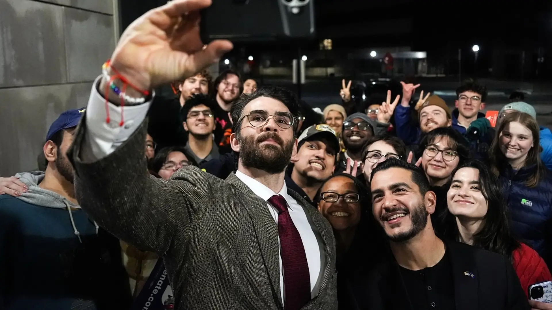 A line of mostly young people stretched out the door and down the street, hundreds waiting in the cold evening air on Tuesday. Some had backpacks slung over their shoulders after coming from class, while others had traveled from afar.