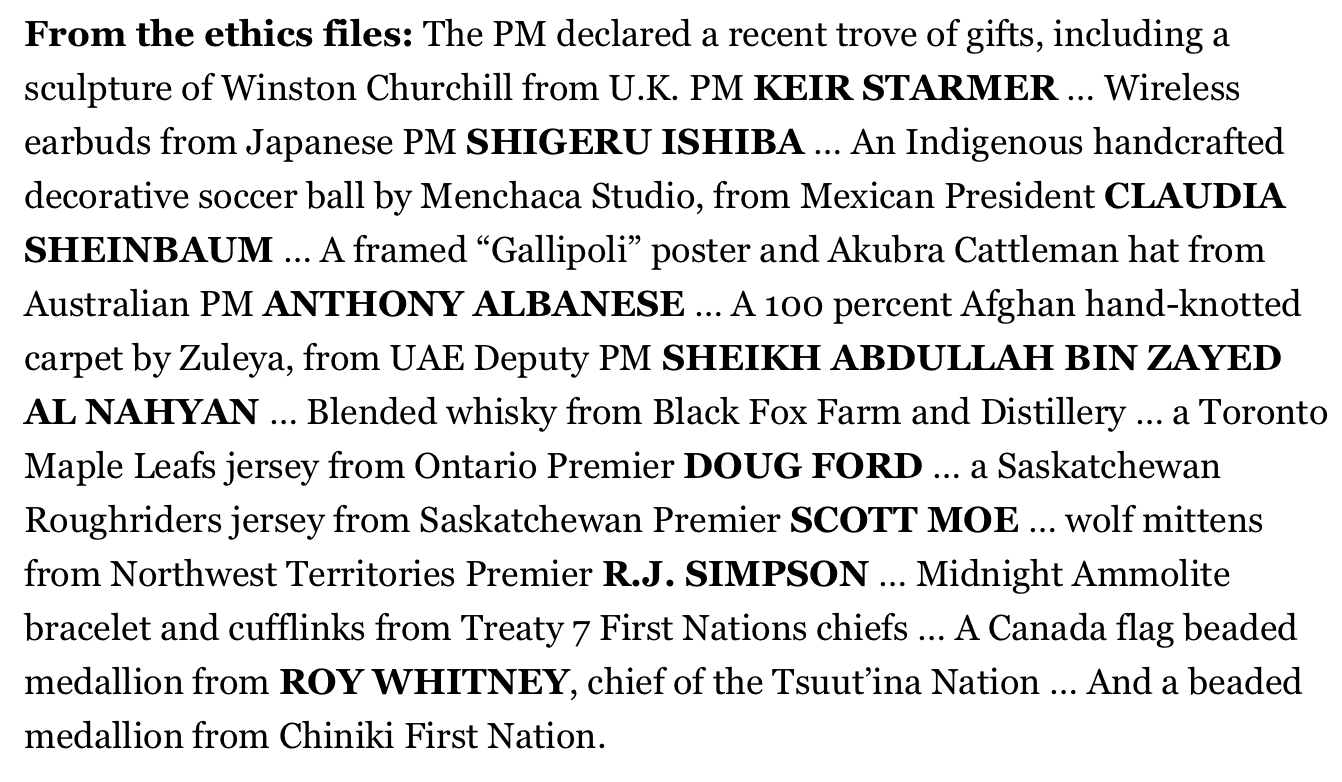 Mark Carney has only been PM for a few months but he’s racking up quite the cupboard full. Thanks to Politico for this: