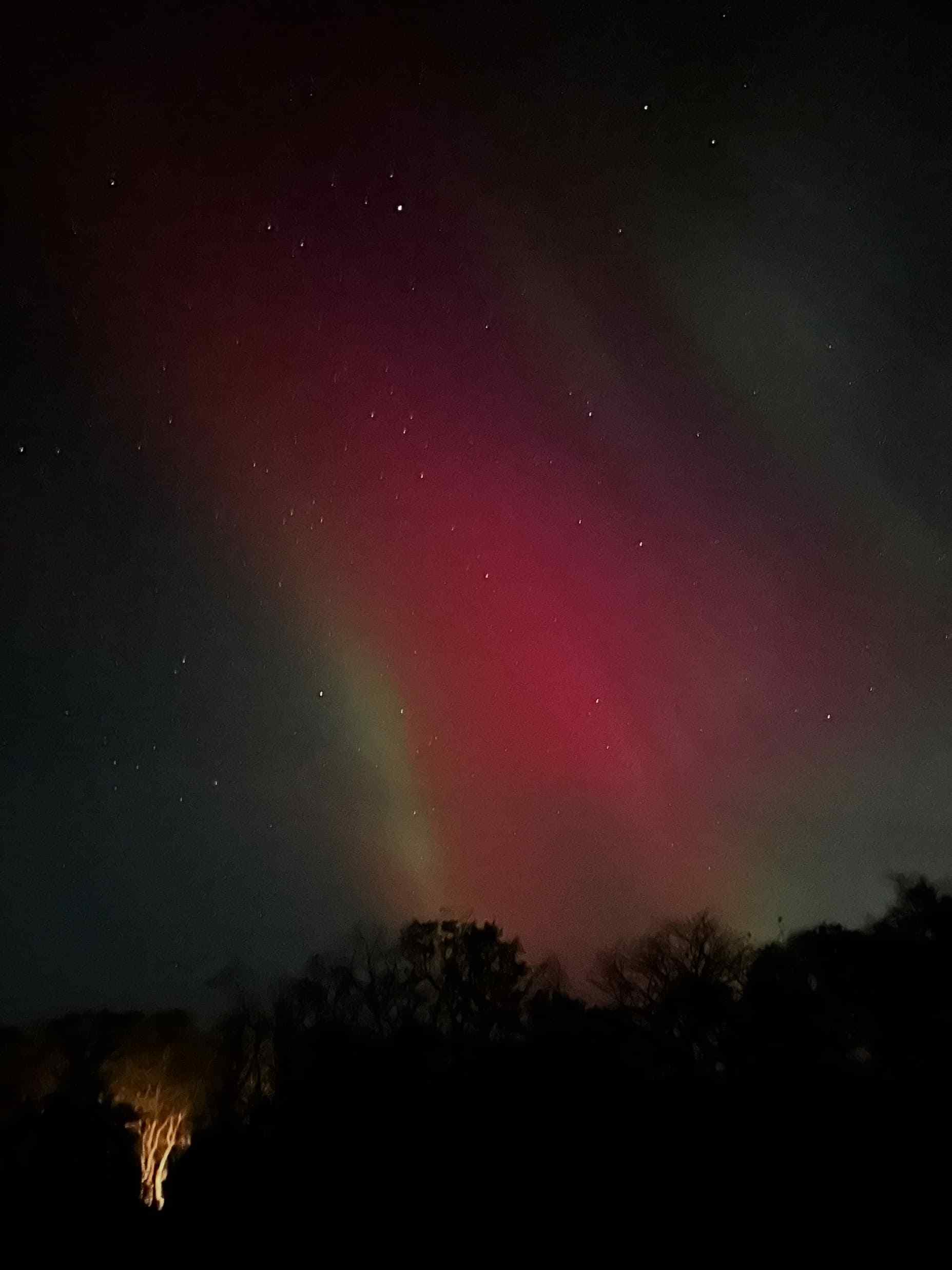There have been some spectacular viewing opportunities in places around the world lately. I spent three years living in Churchill, Manitoba, in the late sixties, and it was a prime aurora borealis watching location. In fact, the old Churchill Rocket Range was used in those days to fire Black Brandt rockets up into the northern lights to gather information to better understand the phenomenon. These days, I spend a lot of time in northern Scotland, where the sky has incredible shows almost nightly. Look at this amazing shot my wife, Cynthia Dale, took with her phone earlier this month: