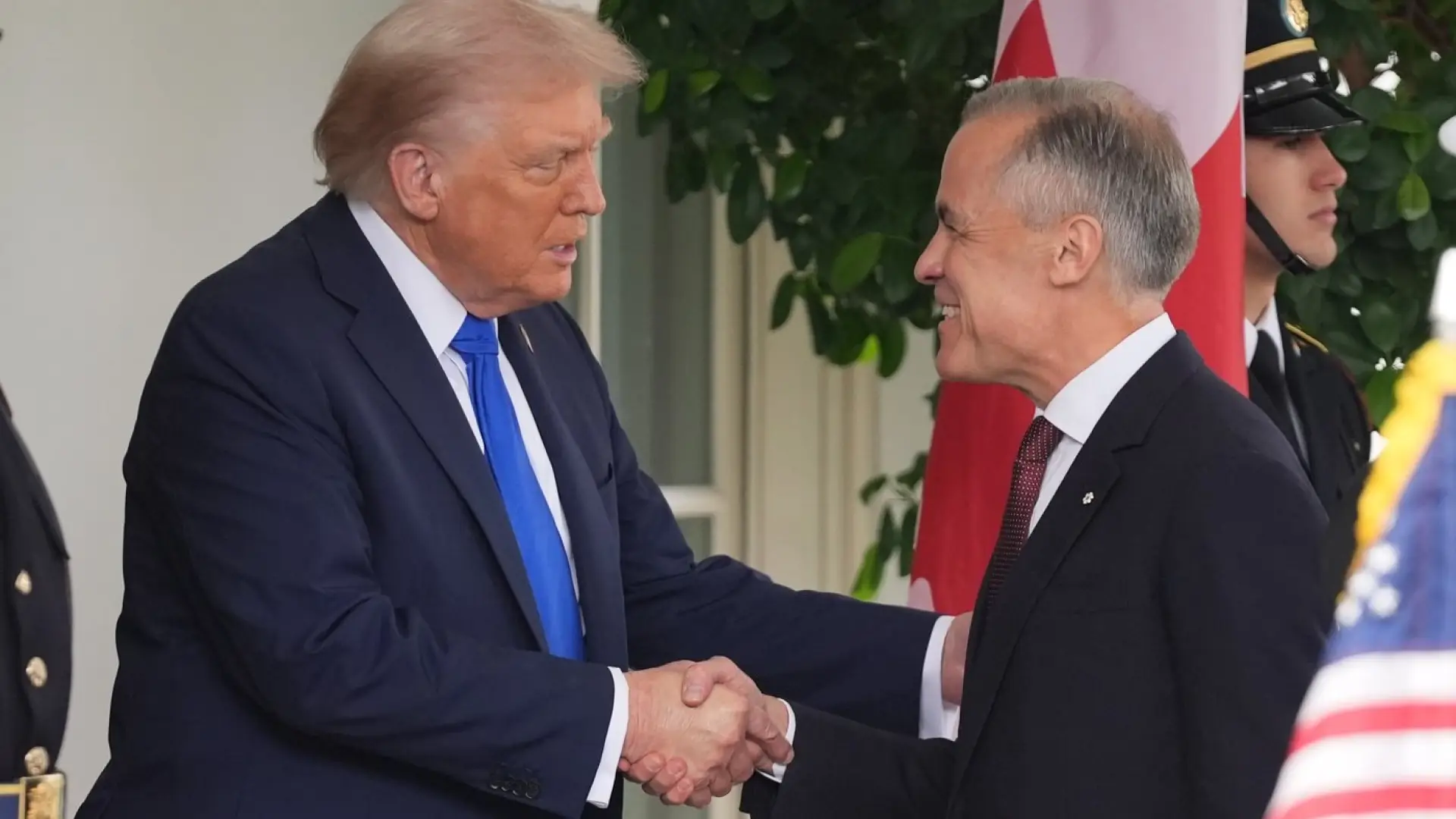 WASHINGTON (AP) -- Canadian Prime Minister Mark Carney arrived at the White House on Tuesday to meet with President Donald Trump at a time when one of the world's most durable and amicable alliances has been fractured by Trump's trade war and annexation threats.