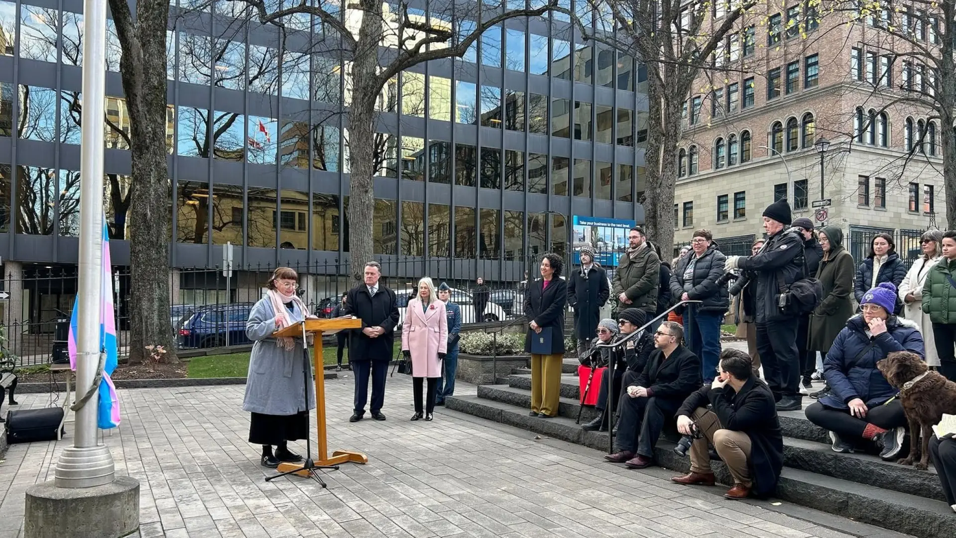 HALIFAX -- A crowd of about 50 people gathered in front of the Nova Scotia legislature in Halifax on Thursday for a flag-raising ceremony to recognize Transgender Day of Remembrance.