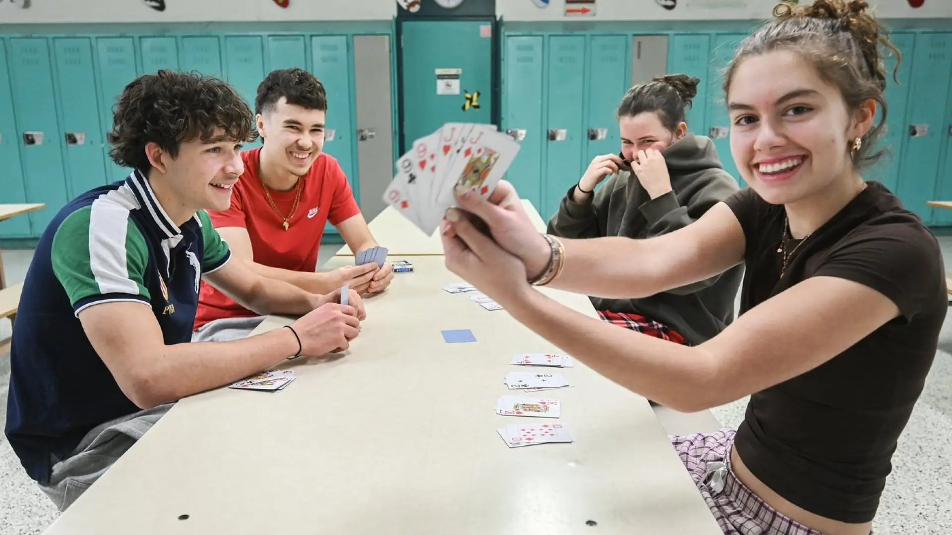 Fellow student Shelby Miclette says she is fairly introverted and the ban on phones at school has pushed her to make new connections.