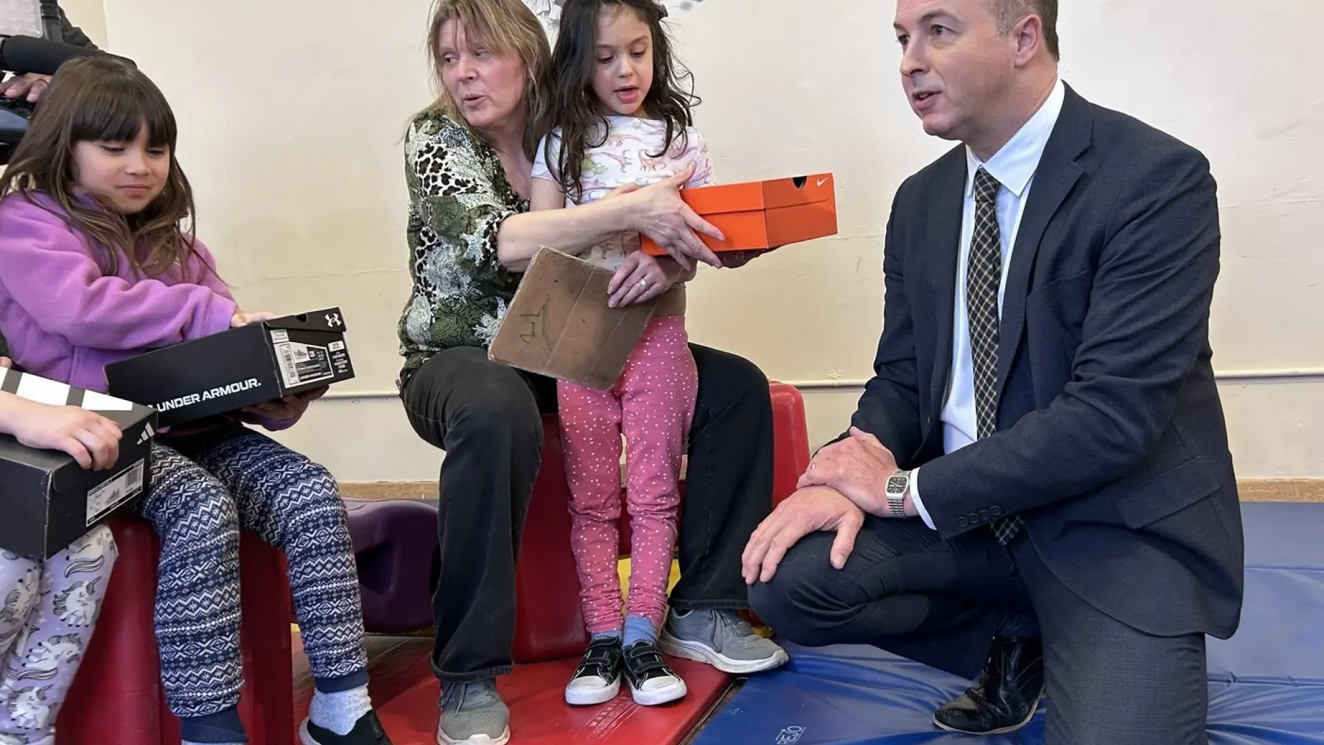 Sala made the announcement at a Winnipeg child care centre, after handing out shoes to several children.